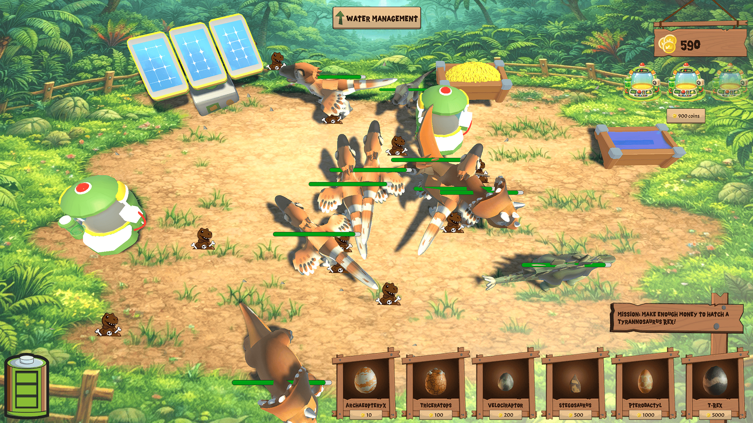 Grow your jurassic garden. Build incubators, hatch eggs and make money by growing Dinosaurs and collecting their drops. Try to get to the final TRex!